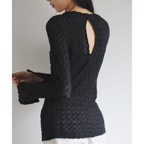 さりげない透け感があり、インナーとのレイヤードも楽しめる一着です。
