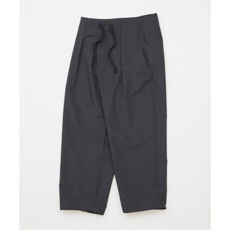 シルエットはリラックス感のあるワイドシルエット。裾にはドローコードを配し、絞ることでシルエットのアレンジも自在に楽しめる仕様にしています。