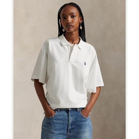 中厚手のコットンメッシュを使用し、ゆったりとしたドルマンスリーブとフィット感のあるウエストを組み合わせたモダンなウェッジ風シルエットに仕立てたポロシャツ・ゆったりとした身頃、ややフィット感のあるウエストと裾 / 腰丈・リブのポロカラー / 2つボタンの前立て・半袖のドルマンスリーブ / 肩のシームに沿って飾りステッチ / ストレートなスリット入りの裾・左胸にシグネチャーのポニー刺繍。・Ralph Laurenのコットン製品を選ぶことで、環境の保護と修復に努めながら、コットン業界が今後も成長を続けられるように支援するBetter Cotton(TM)ミッションへのRalph Laurenの取り組みをサポートすることになります・本商品は物質収支方式に則って材料を調達しているため、全ての製品にBetter Cotton(TM)が含まれない可能性があります。・モデル身長178cm、着用サイズS※商品の色味は、光のあたり具合など諸条件により色感が多少異なって見える場合がございますので予めご了承下さい。 【素材】・本体:綿 100% 衿:綿 100% 装飾部分を除く【生産国】トルコ