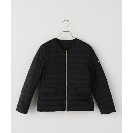 TATRASの代名詞ともなっているノーカラージャケット型のダウンです。コンパクトなダウンアイテムで気になってしまう肩の張りを極力抑えながら、着用での可動域はバスト、袖に分散するパターンテクニックでコンパクトの見え方にさせています。ウエストの絞りも前後で大きく絞りメリハリのある美しいシルエットを作っています。