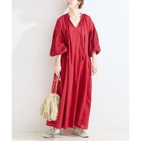 抜け感のある大人スタイルを演出するコットン素材のスキッパーワンピース。
