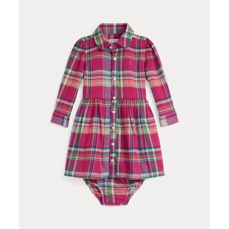 フィット & フレアのシルエットに仕立て、糸染めで鮮やかなチェックモチーフをあしらったコットンドレス。胸にポニー刺繍を施し、シグネチャーのPOLO RALPH LAUREN らしい仕上がりを演出。・フィット & フレアのシルエット・左胸にシグネチャーのポニー刺繍・クラブカラー / ボタン付き前立て・長袖、ボタン付きバレルカフス / シャーリング入りのウエスト・お揃いのブルマー付き※商品の色味は、光のあたり具合など諸条件により色感が多少異なって見える場合がございますので予めご了承下さい。※注意:柄の配置は、商品によって異なります。 【素材】・本体:綿 100% 装飾部分を除く【生産国】インド
