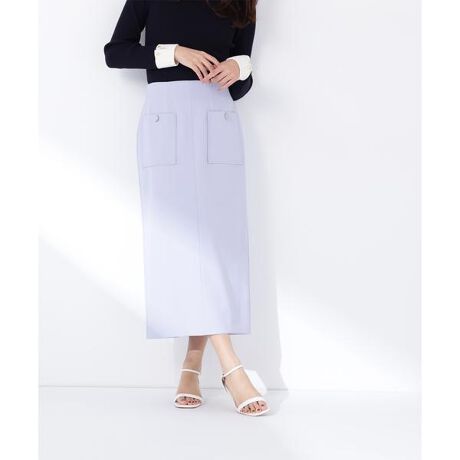 アウトポケットがポイントのナロースカート。アウトポケットに付けたゴールドカラーの縁取り釦がアクセントになり、上品でキレイめな印象を演出。程よいハイウエストと後ろウエストはゴム仕様で、ストレスフリーなはき心地です。後ろ裾のベンツで足さばきも良く、オフィスシーンにもおすすめです。<素材>キレイな表面感の合繊ツイル素材を使用しています。<詳細>仕様・後ろファスナー裏地・あり透け感・なし / 光沢・なし / 伸縮性・ややあり生地の厚さ・普通※モデルの着用画像の場合、光の当たり具合により、実際の色味と異なって見えることがございます。色味は、商品単体の画像をご参照ください。