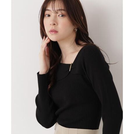 人気アイテムを春らしくアップデート!アシンメトリーディテールが特徴のリブニットです。今回は新鮮な春カラーを揃え、アシンメトリーな襟元には金色バーを付けて大人っぽく仕上げています。スカートでもパンツでも好相性、デイリーに着回せるデザインです。
