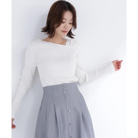 アシンメトリーなネックラインがさりげないアクセントになったリブニット。ベーシックなデザインなので、デイリーに取り入れやすいです。程よいフィット感と伸縮性があり、快適な着心地も魅力。一枚着はもちろん、レイヤードにも活躍してくれます。<素材>しなやかな風合いのハイゲージリブニットです。<詳細>s仕様・前ボタン裏地・なし透け感・なし / 光沢・なし / 伸縮性・あり生地の厚さ・普通※モデルの着用画像の場合、光の当たり具合により、実際の色味と異なって見えることがございます。色味は、商品単体の画像をご参照ください。