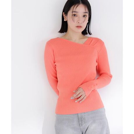 アシンメトリーなネックラインがさりげないアクセントになったリブニット。ベーシックなデザインなので、デイリーに取り入れやすいです。程よいフィット感と伸縮性があり、快適な着心地も魅力。一枚着はもちろん、レイヤードにも活躍してくれます。<素材>しなやかな風合いのハイゲージリブニットです。<詳細>s仕様・前ボタン裏地・なし透け感・なし / 光沢・なし / 伸縮性・あり生地の厚さ・普通※モデルの着用画像の場合、光の当たり具合により、実際の色味と異なって見えることがございます。色味は、商品単体の画像をご参照ください。