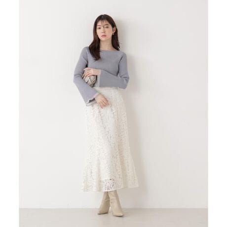 春らしいケミカルレースを使用したオリジナル柄のマーメイドスカート。花柄の繊細な女性らしさを残しつつ、程よくシャープな印象を加えて大人の可愛さを演出。裾に向かって広がるフレアが華やかなマーメイドシルエットです。爽やかで春らしいエクリュカラーとベージュ、大人っぽくシャープなネイビーの3色展開です。