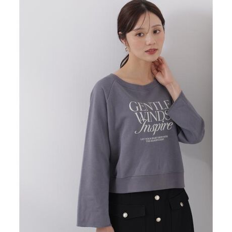 短丈シルエットがフェミニンな雰囲気のロゴトップス。袖幅にゆとりを持たせたラグランスリーブなので、ゆるっとしたリラックス感のあるスタイリングが楽しめます。デニムパンツ合わせでカジュアルに、マーメイドスカートを合わせるとキレイめにも着回せます。