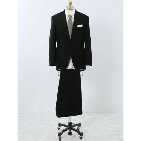 「ジャケット」「スラックス」のツーピースです。深い黒で透けにくく、安心して着用していただけます。二つボタンジャケットは通常のビジネススーツに比べ、低く設置されたゴージラインで落ち着いた印象。ラベル毛芯仕様により、胸に自然な膨らみが生まれ保形性に優れています。さらに肩・肘・膝に特許技術、「パワーネット裏地」を附属。動きの起点になる部分をサポートしてくれるので着心地も快適です。ノータックスラックスはウエスト調整可能(最大±6cm)なアジャスター付きで、多少の体型の変化にもしっかり対応。大切な日に着るフォーマルスーツは、自分用に1着揃えておくと安心です。裾部分は未加工です。