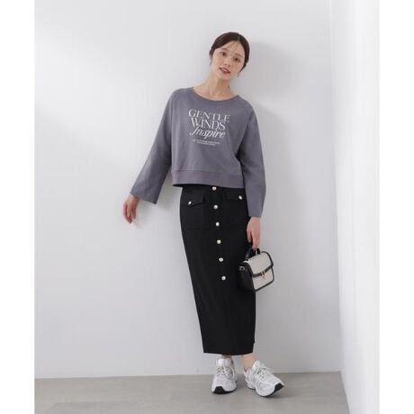 Iラインのナローシルエットが女性らしさを引き立てるスカート。フロントボタンが縦のラインを強調し、すっきり見えを叶えます。フロントボタンは飾りなので安心して着用いただけます。