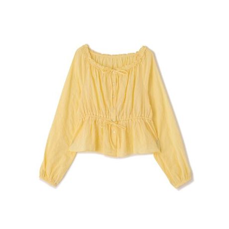 襟ぐりリボンとフリルディテールが華やかで可愛らしいペプラムブラウス。からみ織りとドビー織りを組み合わせた、凹凸感が特徴のカラミドビー生地を使用。ふんわりと軽やかな生地感ながら、ウエストマークでスタイルアップが叶います。一枚で着るのはもちろん、長袖インナーとレイヤードしたり、前開きで羽織りとしても長い期間着回せます。※モデルの着用画像の場合、光の当たり具合により、実際の色味と異なって見えることがございます。色味は、商品単体の画像をご参照ください。