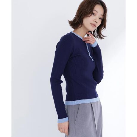 リブ編みでコンパクトなシルエットに仕上げた、女性らしいバイカラーニット。フリルトリミングを効かせ、配色で表現したフリルが華やかなアクセントに。ヘンリーネック仕様で、甘さの中に程よい抜け感をプラス。ボディに程よくフィットし、ウエストインでもアウトでもバランス良く着こなせます。<素材>ハイゲージの細いリブ編みニットです。<詳細>仕様・前ボタン裏地・なし透け感・なし / 光沢・なし / 伸縮性・あり生地の厚さ・普通※モデルの着用画像の場合、光の当たり具合により、実際の色味と異なって見えることがございます。色味は、商品単体の画像をご参照ください。