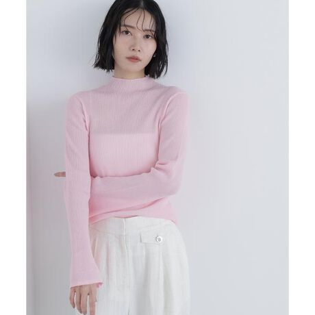 コンパクトなシルエットで程よい透け感のあるシアーニット。袖口を少し広げたフレアスリーブが、ニュアンスのある着こなしを演出。ジャンスカやビスチェのインナーとしても使いやすいデザインです。ベーシックなカラーに加えて、カジュアルなコーディネートにも合うピンクカラーもおすすめです。<素材>やや光沢感のある、3×2のリブで編み立てた、シアーな素材です。<詳細>仕様・開閉なし裏地・なし透け感・あり / 光沢・ややあり / 伸縮性・あり生地の厚さ・普通※モデルの着用画像の場合、光の当たり具合により、実際の色味と異なって見えることがございます。色味は、商品単体の画像をご参照ください。