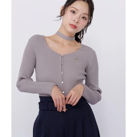 昨年人気だったデザインを今年らしくアップデート!ハート型のロゴプレートを使用したチョーカー付きリブニット。今年は襟ぐりをほんのりスクエアネックにし、バイカラーの黒が仲間いり。ニットチョーカーがアクセントになります。フェミニンにもカジュアルにも好相性、ボトムスを選ばない万能リブニットです。※撮影時照明の関係により、色味が違って見える場合がございます。またパソコン・スマートフォンなどの環境により、若干製品と画像のカラーが異なる場合もございます。予めご了承ください。商品の色味は、商品単品画像をご参照下さい。※商品画像はサンプルのため、色味やサイズ等の仕様に変更がある場合がございますので、予めご了承ください。