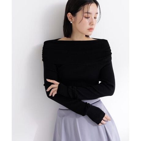 トレンドのオフショルデザインがデコルテをキレイに見せてくれるニット。オフショル部分にギャザーを寄せており、肩を華奢に見せてくれます。コンパクトなシルエットなのでワイドパンツやフレアスカートを合わせた、女性らしいコーディネートがおすすめです。<素材>身頃は細いリブ編み、襟は度甘に編んだ編地でオフショルをふんわり引き立てます。ONにもOFFにも使えるプレーンな素材感です。<詳細>仕様・開閉なし裏地・なし透け感・なし / 光沢・なし / 伸縮性・あり生地の厚さ・普通※モデルの着用画像の場合、光の当たり具合により、実際の色味と異なって見えることがございます。色味は、商品単体の画像をご参照ください。