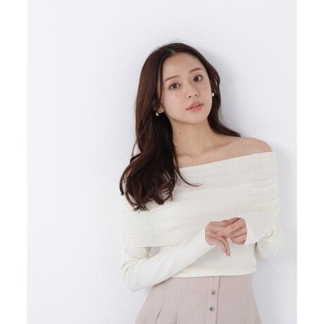 トレンドのオフショルデザインがデコルテをキレイに見せてくれるニット。オフショル部分にギャザーを寄せており、肩を華奢に見せてくれます。コンパクトなシルエットなのでワイドパンツやフレアスカートを合わせた、女性らしいコーディネートがおすすめです。<素材>身頃は細いリブ編み、襟は度甘に編んだ編地でオフショルをふんわり引き立てます。ONにもOFFにも使えるプレーンな素材感です。<詳細>仕様・開閉なし裏地・なし透け感・なし / 光沢・なし / 伸縮性・あり生地の厚さ・普通※モデルの着用画像の場合、光の当たり具合により、実際の色味と異なって見えることがございます。色味は、商品単体の画像をご参照ください。