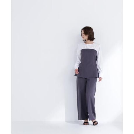 シンプルながら表情のある素材感が魅力のパンツ。脚のラインをキレイに見せてくれるすっきりとしたシルエットです。後ろウエストはゴム仕様でフィット。トップスを選ばずに着回せるデザインです。同素材のブラウスとのセットアップで、より洗礼された印象のスタイリングが楽しめます。<素材>程よくハリ感のあるシャツ生地とメランジ調のツイル生地を使用。<詳細>仕様・左ファスナー裏地・なし透け感・なし / 光沢・なし / 伸縮性・なし生地の厚さ・普通<シリーズ>■ビスチェドッキングブラウス[品番:0176110212] ※モデルの着用画像の場合、光の当たり具合により、実際の色味と異なって見えることがございます。色味は、商品単体の画像をご参照ください。
