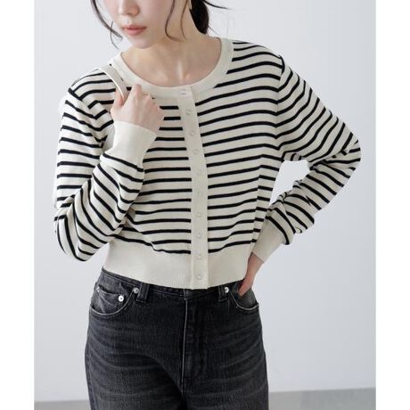 昨年好評だったアイテムのカラーとボタンをアップデート!春から使いやすいコットンポリエステル混を使用した、総針編みニットカーディガンです。シルバーカラーのリングドット釦を、間隔狭く並べてポイントに。コンパクトながら襟ぐりやバストはややゆとりを持たせ、裾リブも締め付けすぎないデザインに。キャミワンピースはもちろん、カットソーやブラウスの上からも羽織れるのでおすすめ。春夏スタイルにぴったりで、持ち運びにも便利なアイテムです。※モデルの着用画像の場合、光の当たり具合により、実際の色味と異なって見えることがございます。色味は、商品単体の画像をご参照ください。