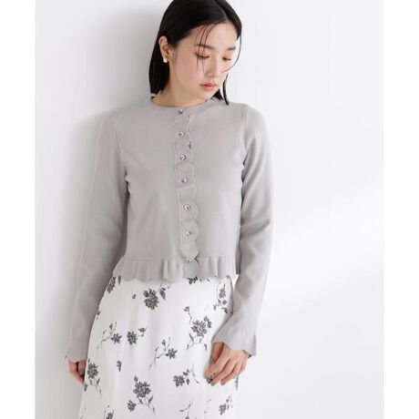 上品な輝きを放つメタルボタンとフェミニンなフリルをあしらったカーディガン。羽織るだけでコーディネートに華やかさをプラスし、シンプルな装いも一気に旬顔に見せてくれます。程よい厚みとやわらかな肌触りで、季節の変わり目にもおすすめです。<素材>柔らかい肌触りのキレイめな総針編みニットです。<詳細>仕様・前ボタン裏地・なし透け感・なし / 光沢・なし / 伸縮性・あり生地の厚さ・普通※モデルの着用画像の場合、光の当たり具合により、実際の色味と異なって見えることがございます。色味は、商品単体の画像をご参照ください。
