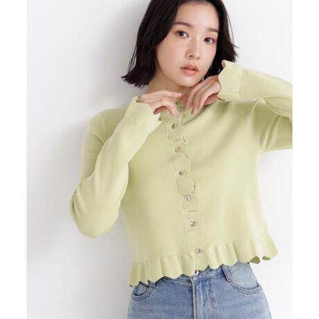 上品な輝きを放つメタルボタンとフェミニンなフリルをあしらったカーディガン。羽織るだけでコーディネートに華やかさをプラスし、シンプルな装いも一気に旬顔に見せてくれます。程よい厚みとやわらかな肌触りで、季節の変わり目にもおすすめです。<素材>柔らかい肌触りのキレイめな総針編みニットです。<詳細>仕様・前ボタン裏地・なし透け感・なし / 光沢・なし / 伸縮性・あり生地の厚さ・普通※モデルの着用画像の場合、光の当たり具合により、実際の色味と異なって見えることがございます。色味は、商品単体の画像をご参照ください。