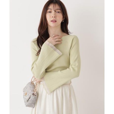 さり気ないシアー編みが大人フェミニンなフレアスリーブデザインのリブニット。デコルテをキレイに見せてくれるボートネックで、オフショル風にも着られるデザインです。後ろネックのきらっとパーツや袖口の軽やかなシアー感もポイント。キレイめパンツやスカートはもちろん、カジュアルなデニムスタイルにも合わせやすい万能アイテムです。