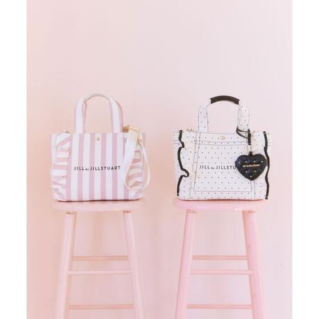 JILL by JILL STUART 定番人気「フリルトート」からバレンタイン限定プリントが登場!バレンタインをイメージした特別なプリントは、キュートなドット柄とキャッチーなストライプ柄の2色展開。普段のコーデに取り入れるだけで、気分をぐっと盛り上げてくれる存在感のあるアイテムです。肩掛けできるショルダーストラップ付きです。※撮影時照明の関係により、色味が違って見える場合がございます。またパソコン・スマートフォンなどの環境により、若干製品と画像のカラーが異なる場合もございます。予めご了承ください。商品の色味は、商品単品画像をご参照下さい。※商品画像はサンプルのため、色味やサイズ等の仕様に変更がある場合がございますので、予めご了承ください。