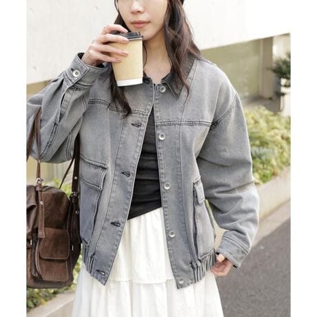 バイカラーの襟元と袖口カフス裏にフェイクレザーを施したワークデニムジャケット。ヴィンテージ加工デニムにフェイクレザーを効かせて、カジュアル過ぎず大人っぽい印象に。程よくゆとりのあるボックスシルエットに、裾ゴム仕様でブルゾンライクな丸みのあるフォルムを演出します。ワークテイストなマチ付きフラップポケットもアクセントに。シンプルながらディテールで差のつく一着は、羽織るだけでこなれたスタイリングが完成します。ミニボトムやナロースカートとのコーディネートがおすすめ。ブラックデニムのみ、レーストリミングワイドストレートデニムパンツ(ブランド品番131630202)と色を合わせているのでセットアップもおすすめです。※モデルの着用画像の場合、光の当たり具合により、実際の色味と異なって見えることがございます。色味は、商品単体の画像をご参照ください。
