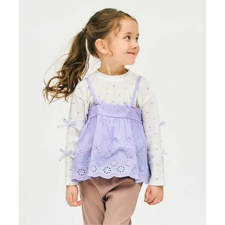 apres les cours(アプレレクール)の半袖Tシャツ「レースビスチェ・リボンワッフルトップスセット」は、ナチュラルなスタイルにさりげなくデザインをプラスしたおしゃれアイテム*