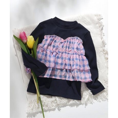 apres les cours(アプレレクール)の長袖Tシャツ「WEB限定 シアーチェックドッキングトップス」は、ナチュラルなスタイルにさりげなくデザインをプラスしたおしゃれアイテム*