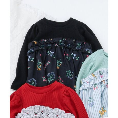 apres les cours(アプレレクール)の長袖Tシャツ「ワッフルフリルドッキングトップス」は、ナチュラルなスタイルにさりげなくデザインをプラスしたおしゃれアイテム*