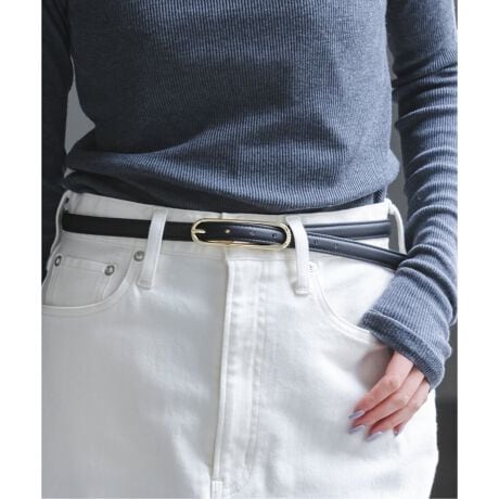 柔らかな曲線で描くオーバル型のバックルは、華奢なベルトとの絶妙なコントラストで存在感を引き立たせ、シンプルな装いに静かな個性を添えてくれます。