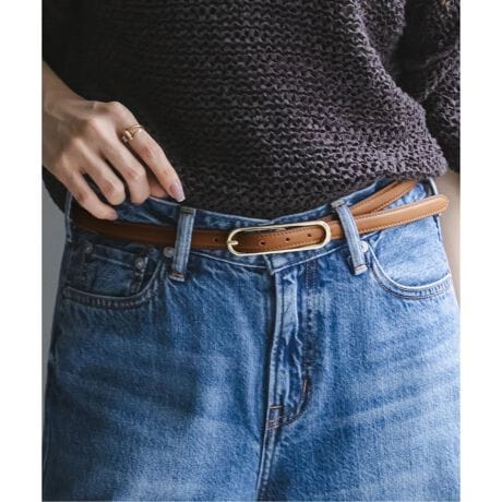 柔らかな曲線で描くオーバル型のバックルは、華奢なベルトとの絶妙なコントラストで存在感を引き立たせ、シンプルな装いに静かな個性を添えてくれます。