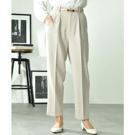 軽やかで弾力性に優れた生地は、心地よい感触と快適性をお届けします。きれいにセンターラインが入ったシンプルなシルエットで、上品にスッキリ美脚に見えるパンツです。また、絶妙なバランスで裾が細くなったシルエットはスタイルアップ効果と動きやすさも叶えてくれます。丈は足元がきれいに見える丈でヒールはもちろん、フラットシューズも良く合います。ご自宅で洗えるイージーケアが出来るのも嬉しいポイントです。