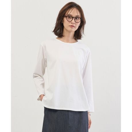 裾がシャツのようにラウンドしたシャツテールデザインのカットソー。1枚着はもちろん、ニットやスウェットなどに合わせたレイヤードスタイルに活躍する1着です。裾からのぞかせるだけで、抜け感を演出してくれます。襟ぐりのパイピングが普通のTシャツとは一味違うさりげないディテールとなっており、シンプルな中にもこだわりを感じるデザインが魅力です。