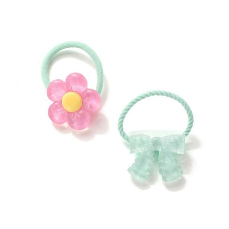 つるんとした質感がかわいらしい、モチーフ付きヘアゴムの2点セット。