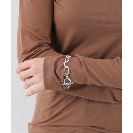 大きめのオーバルリンクを連ねた、モダンで洗練されたチェーンブレスレット。シルバー925の輝きが、手元に力強いアクセントをプラスします。トグルタイプの留め具がデザインのポイントになり、着脱もスムーズ。単品使いはもちろん、他のアクセサリーとのレイヤードでアレンジを楽しむのもおすすめです。
