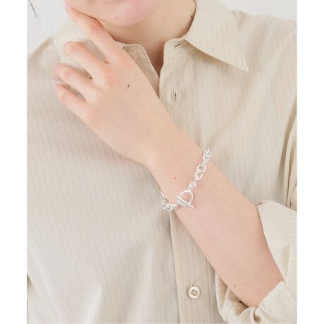 程よいボリューム感のチェーンを連ねた、ミニマルで洗練されたブレスレット。シルバー925の輝きが、手元にモダンな存在感をプラスします。トグルタイプの留め具がデザインのアクセントになり、着脱もスムーズ。