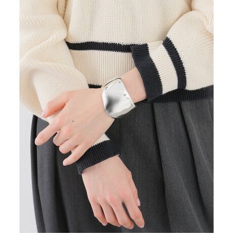 なめらかな曲線が美しい、存在感のあるバングル。シルバーの輝きと立体的なフォルムが、手元に洗練されたアクセントを添えます。シンプルながら力強さを感じさせるデザインで、単品使いはもちろん、他のアクセサリーとのレイヤードもおすすめ。タイムレスに愛用できるアイテムです。