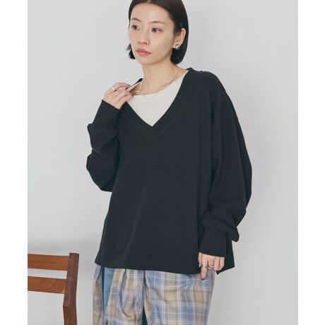 ほんのり起毛した裏地がシーズンスタイルに最適なプルオーバー。程よく開いたVネックがデコルテラインを綺麗に演出し、シャツなどと合わせたレイヤードスタイルもお楽しみいただけます。細畝リブがシルエットをすっきりと魅せ、スタイルアップ効果にも期待。ベーシックフォルムで着回しやすく、ロングシーズン活躍してくれるおすすめのアイテムです。透け感[なし]