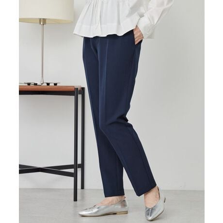 裾にかけて細くなるテーパードシルエットとセンタープレス加工で縦ラインが強調され、すっきりとした美脚効果が期待できます。