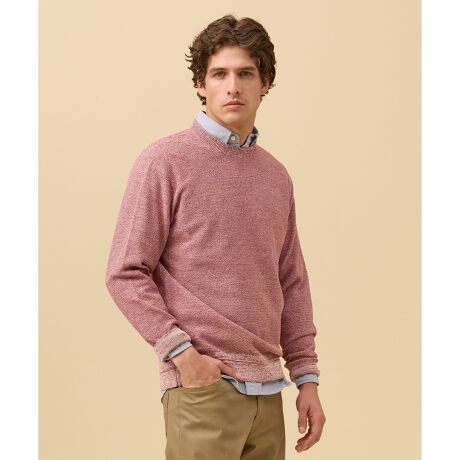 ■素材綿100%の糸を使用。擬麻加工という特殊な樹脂で糸をコーティングし、麻に似せた雰囲気にする加工を施しています。加工された糸の風合がまるで麻糸のようにドライタッチになることが特徴です。また、濃淡の2色の糸を撚糸して、コントラストのあるユニークな糸で編立ています。全体を細かいカノコ柄で編立ていますので、素材特性も相まって清涼感のある着心地に仕上がっています。
