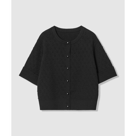 染めの釦は真ん中にビジューがついていてきらっとしたアクセントに。