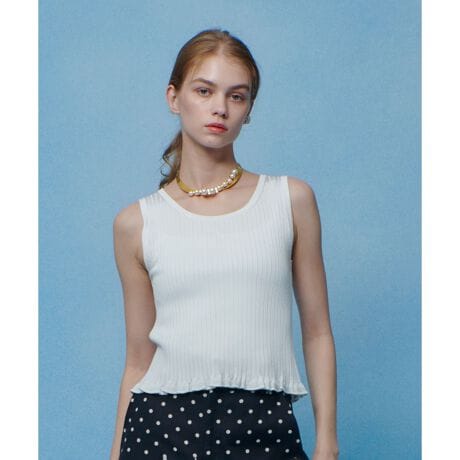 艶感のあるブライトレーヨン素材のワイドリブ。体にピタピタと張り付かず、冷たいサラリとした肌触り。ベーシックなシルエットながら、裾口に小さなフリルをあしらい、エレガントに仕上げました。同素材のカーディガンのインナーにアンサンブルとして着るだけでは無く、ジャケットのインナーにもお役立ち。素材感を活かしたカラー展開で、胸元を鮮やかに印象付けます。