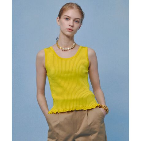 艶感のあるブライトレーヨン素材のワイドリブ。体にピタピタと張り付かず、冷たいサラリとした肌触り。ベーシックなシルエットながら、裾口に小さなフリルをあしらい、エレガントに仕上げました。同素材のカーディガンのインナーにアンサンブルとして着るだけでは無く、ジャケットのインナーにもお役立ち。素材感を活かしたカラー展開で、胸元を鮮やかに印象付けます。
