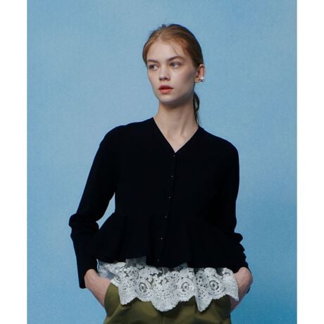 ペプラムのニットに取り外し可能なレースSKがついた便利で華やかなPO。