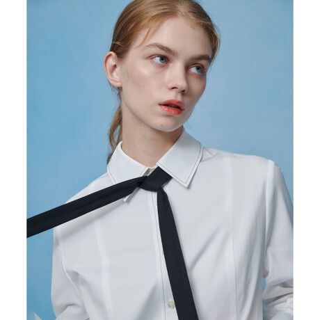 配色のディテールがポイントになったティアードシャツワンピース。体のラインを拾いすぎない適度なゆとりを持たせつつ、体のラインを綺麗に見せてくれるようなシルエットに、切り替えから裾にかけてボリュームを持たせたティアードディテールで、華やかで上品なシャツワンピース。透け感のある繊細なオーガンジー素材を裾にあしらい、素材の違うオーガンジーを重ねたボウタイはネクタイのように結んでマニッシュMIXなスタイルや、一絡げで垂らして頂いたり、リボン結びにしてフェミニンなポイントにもなります。各所にあしらった配色ステッチもポイントです。