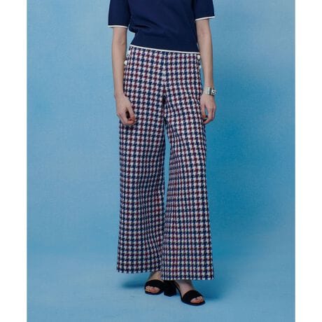 国内でオリジナルで柄を組んだトリコカラーのチェックツィードです。3月でのマリーナのテーマに合わせてトリコカラーの配色でお作りしています。