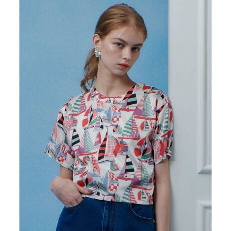 ショート丈のTシャツデザインのブラウスです。