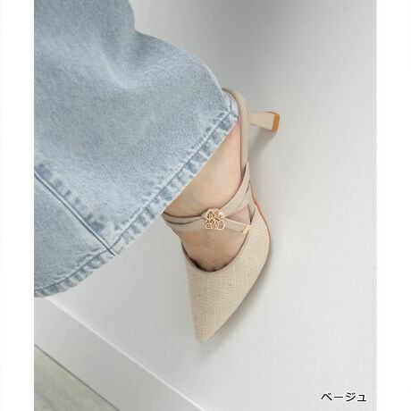 上品なモノグラムパールがポイントのミュールパンプス。