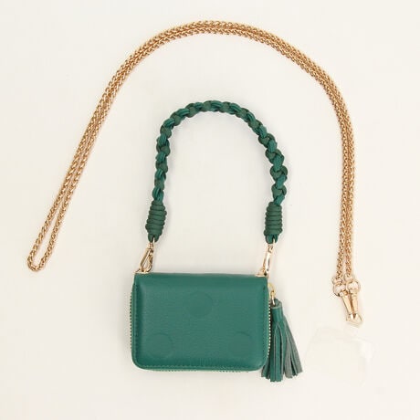 ドット型押しを施した牛革を使用したジャバラチャームウォレットショルダー。